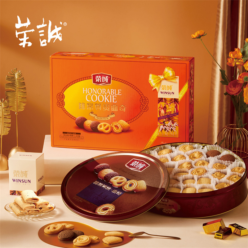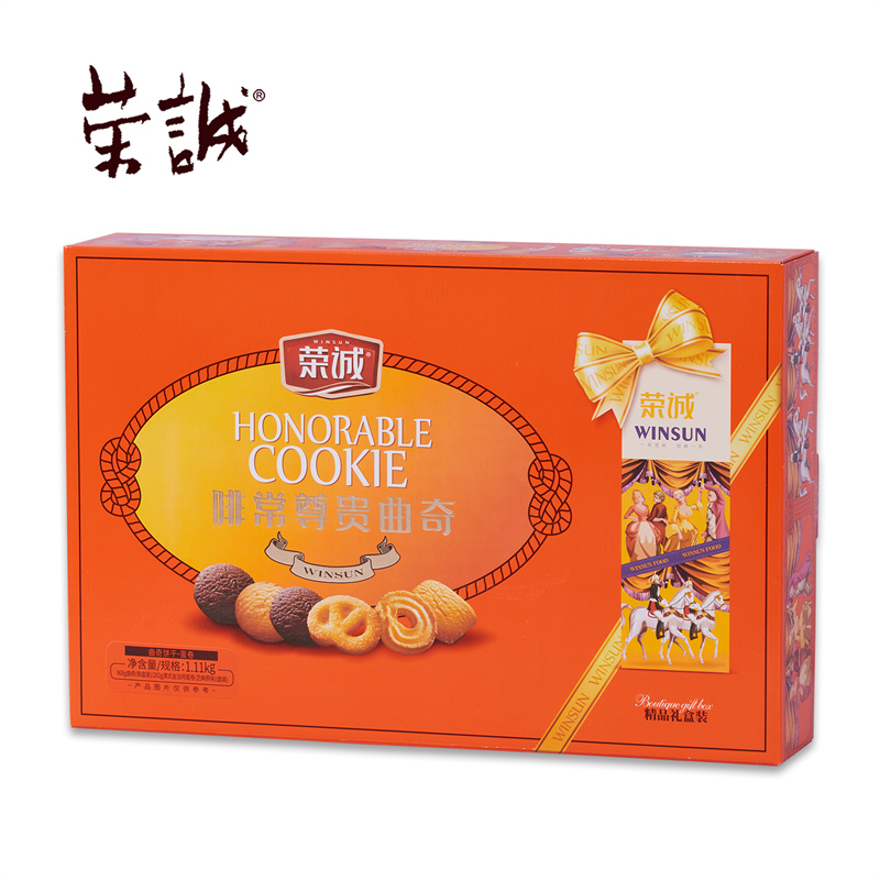 【編 碼】 CGZ2305A 【條形碼】 6925755533747 【尺 寸】 44.8x30x8.7cm 【凈含量】 1110g 【規(guī) 格】 1110gx6盒/箱 【內(nèi)容物】  908g榮誠啡常尊貴曲奇x1,202g澳式金泊雞蛋卷(芝麻原味)x1