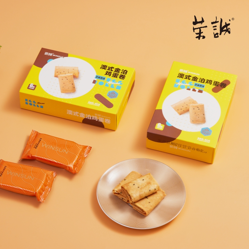【編 碼】 CGZ2119 【條形碼】 6925755534898 【尺 寸】 12.5x4.5x19cm 【凈含量】 80g 【規(guī) 格】 80gx24盒/箱 【內(nèi)容物】  13.5g澳式金泊雞蛋卷(芝麻原味)x6包