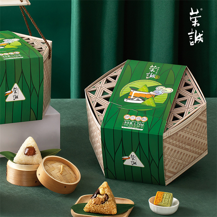 【編 碼】 HZZ2404(25) 【條形碼】 6925755532047 【尺 寸】 30x26.5x16.6cm 【凈含量】 1.74kg 【規(guī) 格】 1.74kgx4盒/箱 【內(nèi)容物】  140g潮汕秘制菜脯鮮鴨肉粽x2,100g潮汕雙烹粽x2,100g香菇肉粽x2,100g蜜棗粽x2,150g豆沙粽x2,25g狀元糕(海鹽芝士味)x8,60g咸鴨蛋(熟)x6